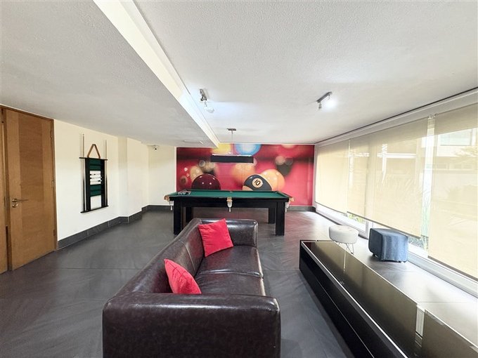 Sala de juegos con bar y mesa de billar.