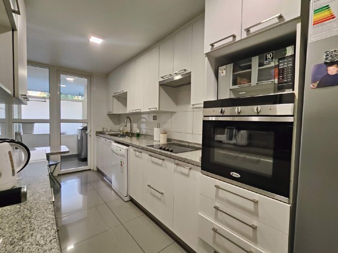 Distribución cómoda y funcional: gran living-comedor con salida a amplia terraza que recorre todo el departamento, 3 dormitorios (principal en suite), 3 baños y cocina cerrada totalmente equipada, con logia, conexión a lavadora y alacena.