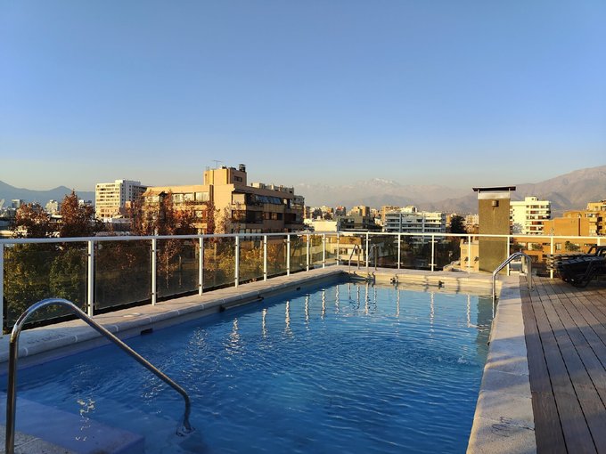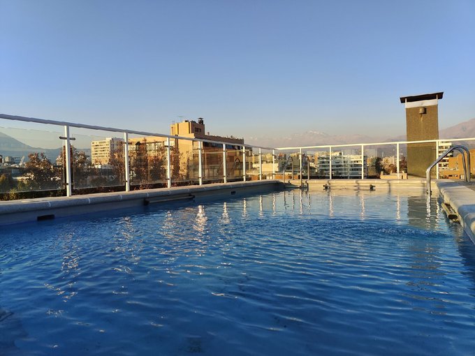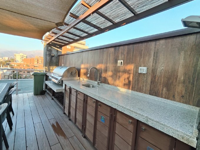 Condominio full equipamiento y seguridad 24/7: piscina y quincho en la azotea con vista a la cordillera, lavandería, sala de niños, sala de eventos, bicicletero, estacionamientos de visitas y patio.