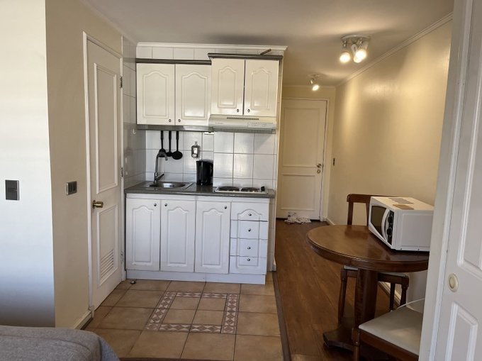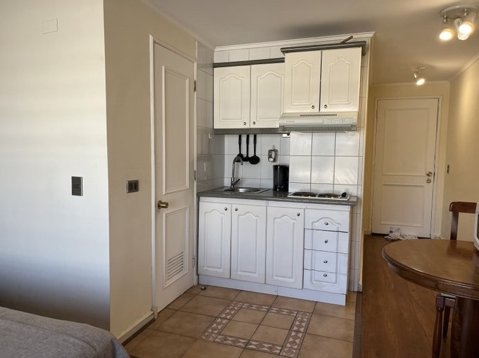 El departamento cuenta con un baño y un ambiente privado que se adapta perfectamente a tus necesidades personales o profesionales. Además, los gastos comunes son aproximadamente 80,000 pesos.