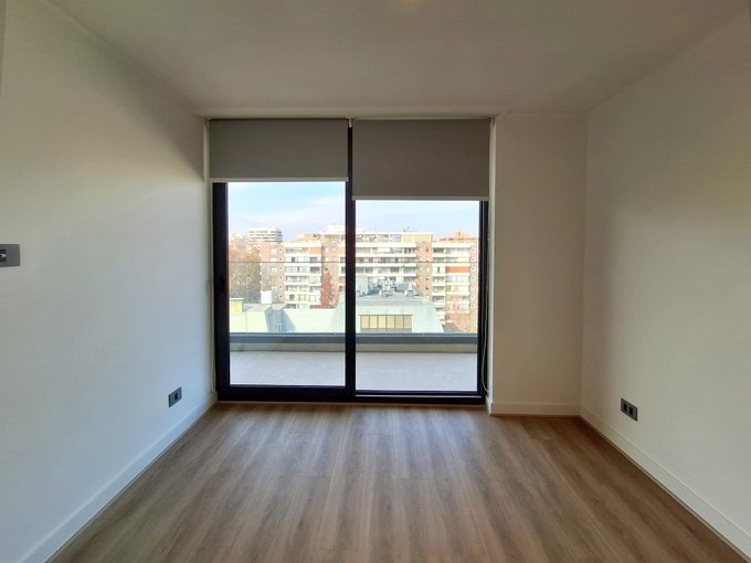 El departamento consta de un dormitorio con baño en suite y amplio closet, un espacio de living comedor con cocina integrada, cuyo tamaño es suficiente para añadir un área de trabajo cómoda y además, tiene una exquisita terraza de vista despejada, la cual abarca todo el ancho del departamento (teniendo también acceso desde el dormitorio). Incluye nevera, horno, microondas, encimera, futón, cortinas roller, mesón y taburetes.