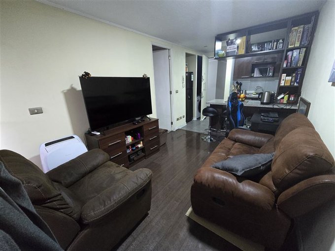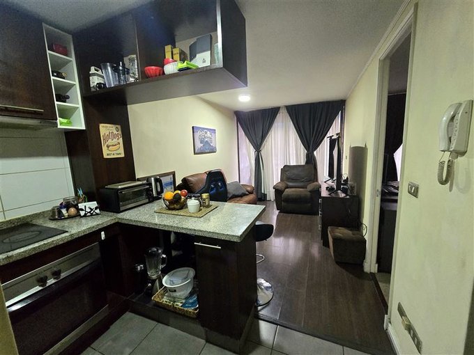 Edificio cuenta con accesos controlados 24 hrs, sala de eventos, piscina con vista panorámica, quinchos y lavandería.