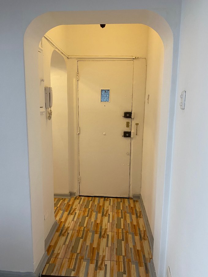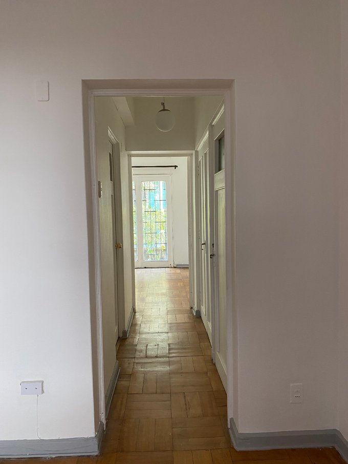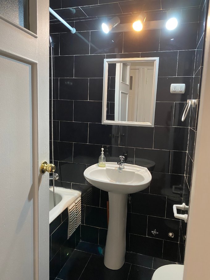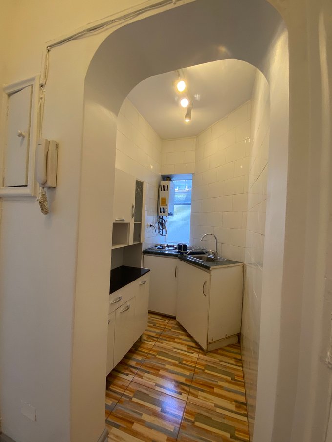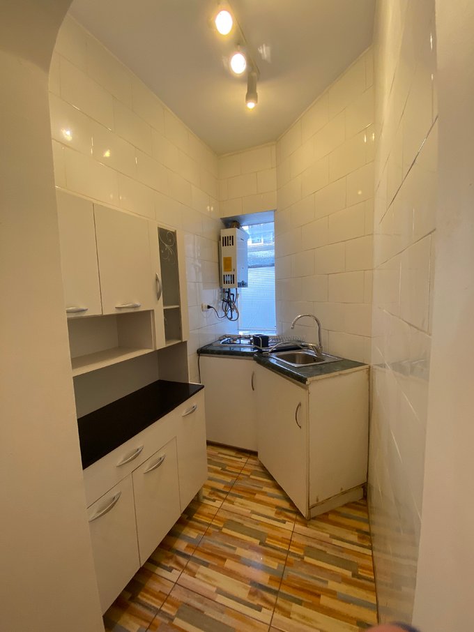 Departamento antiguo, remodelado. Cocina encimera a gas licuado con dos platos. Incluye lámparas en todos los espacios y rieles para cortinas. En el baño hay conexión para lavadora.