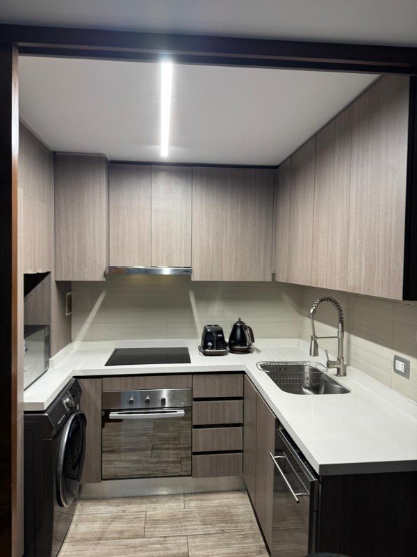 Consta de Hall de entrada, Living-Comedor con salida a terraza con vista despejada al oriente, cocina equipada con refrigerador y freezer empotrados, horno y campana eléctricos, encimera en vitrocerámica, conexión para lavadora y lavavajillas.