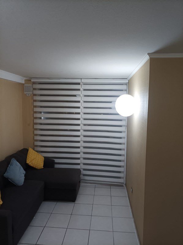 Living con sofá cama tipo L y cortinas roller dúo