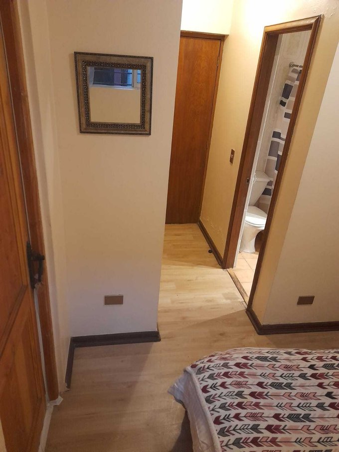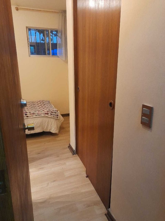 Acceo independiente, cuenta con una cama de 1.5 plaza, baño propio, closet, cocinilla, frigiobar, loggia con lavadora y secadora, tendedero de ropa.